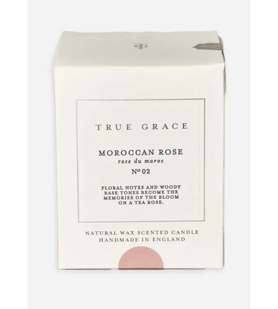 Bright, floral and uplifting, this hand-poured candle fills the room with a romantic blend of garden rose, soft sandalwood and a twist of citrus. Crafted in small batches by True Grace, it offers a clean, even burn for up to 40 hours.