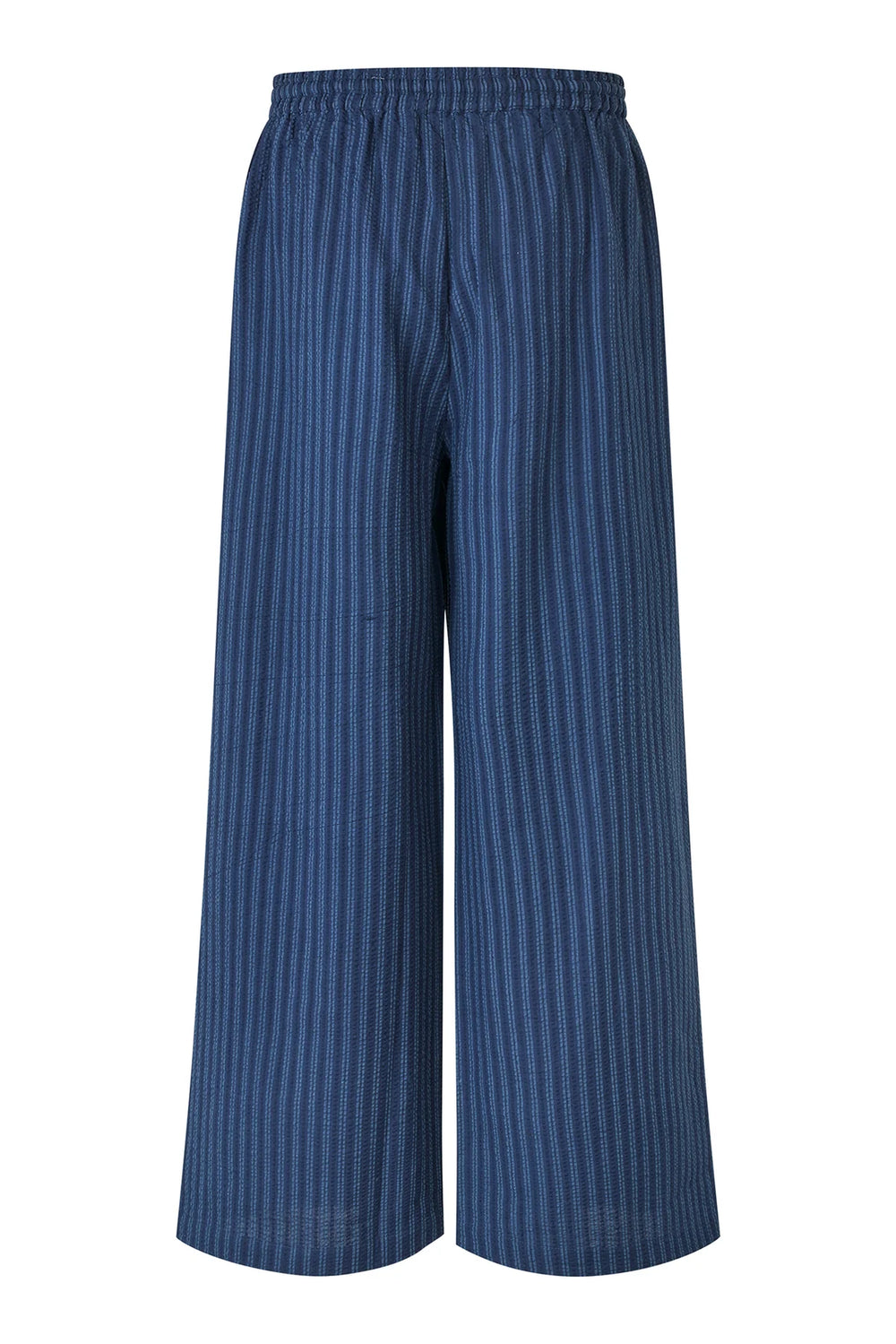The Liam trousers from Lolly's Laundry offer a sophisticated yet comfortable look with their wide-leg cut and relaxed fit. They feature and elasticated waist with a drawstring and practical side pockets. Perfect for pairing with a simple tee or a pretty blouse for a more dressy occasion.