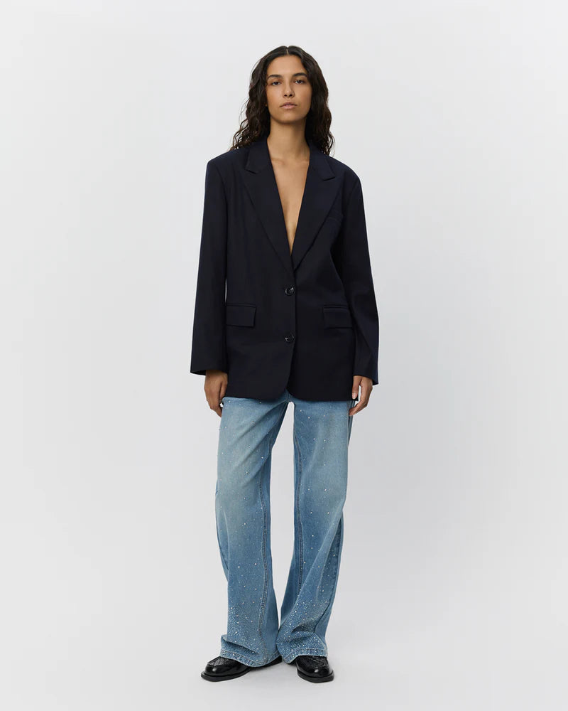We love a blazer when the autumn season kicks in and this gorgeous navy blazer from Sofie Schnoor is exudes chicness and sophistication. Slightly oversized in shape but still creates an elevated and smart look. The blazer features a chest pocket, jetted pockets with flaps, is single breasted and has a back vent. Pair with any coloured denim and you're good to go!