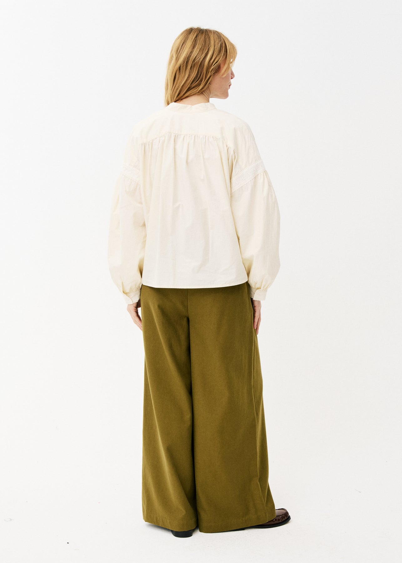 The Phybie trousers in a super relaxed, wide leg style. Mid rise with a button fastening, front pleats and side pockets. A cool change to everyday denims.