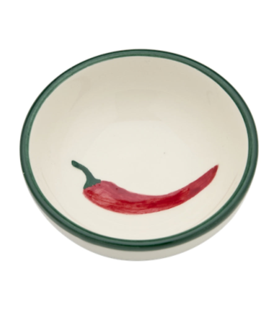 The Peperoncino Tapas Bowl is a fun little bowl with a hand-painted drawing of a chilli pepper. Combine this bowl with the other items from the collection for summer tapas evenings.