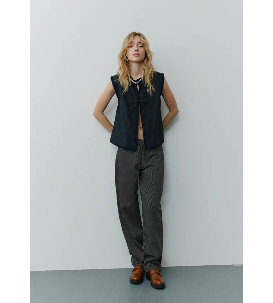 These TokyoSW Jeans from Sofie Schnoor in dark grey with subtle stripes offer a lightweight barrel fit designed for comfort and style. Featuring a mid-waist cut and regular length, they provide an ideal balance of a modern silhouette and are easy to wear. Practical details include front and back pockets, belt loops, and a reliable zip and button closure, making them a versatile wardrobe staple.
