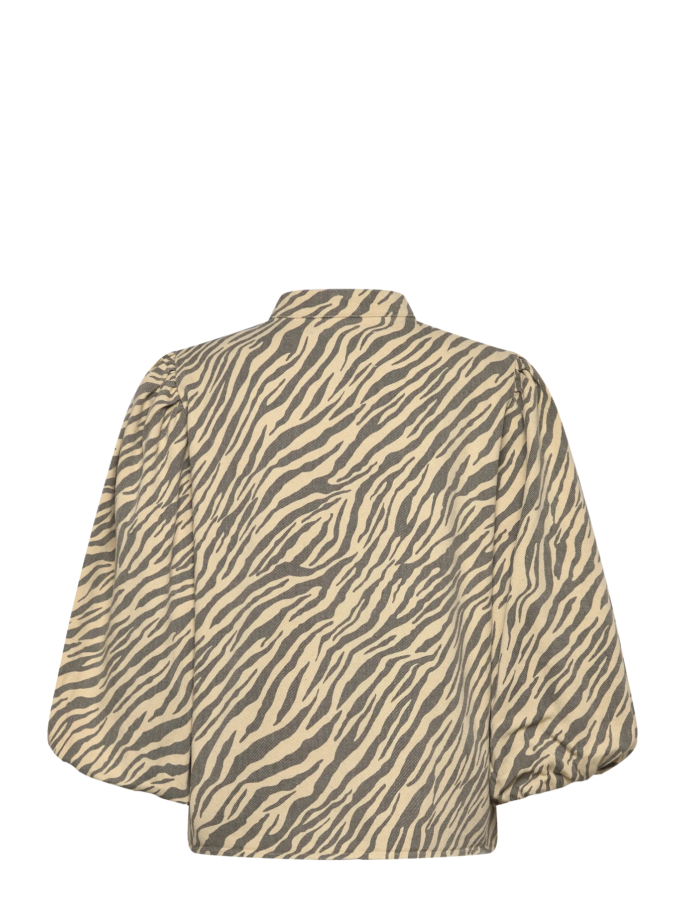 The MSOlenna Shirt in Sand Grey combines a fun zebra print with a girly touch. Featuring a high round neckline and playful 3/4 length puff sleeves, it offers a boxy fit that effortlessly doubles as a jacket or shirt. Crafted from soft cotton denim, this buttoned-centre top is perfect for layering and adding a stylish edge to any outfit.